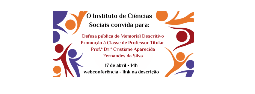 O Instituto de Ciências Sociais tem a honra e satisfação de convidar para Defesa pública de Memorial Descritivo para promoção à Classe de Professor Titular da Prof.ª Dr.ª Cristiane Aparecida Fernandes da Silva