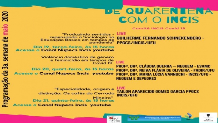 Atividades do Incis durante a quarentena: 3ª semana de maio